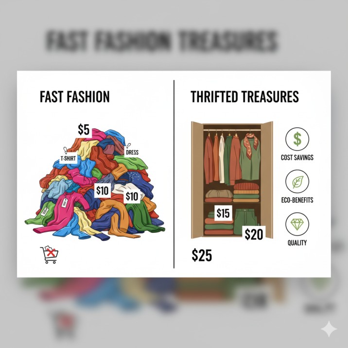 Let’s compare fast how to shop for fashion on a budget vs. thrifting for real impact: